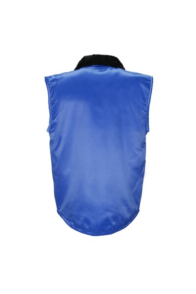 Blaue, stylische Pilotenweste für mäßig kalte Tage mit guter Isolation und Windresistenz