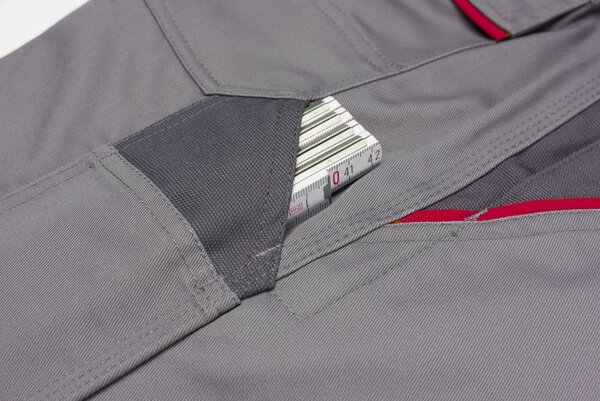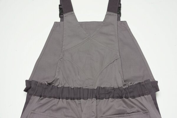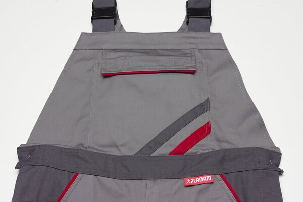 Blaue Latzhose aus der Planam Highline Serie mit hochgezogenem Rückenteil und Bundweitenverstellung